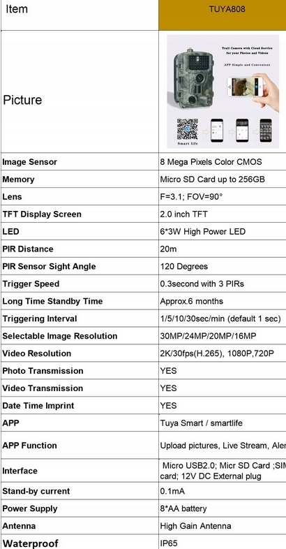 Fotopułapka 4G TUYA to nowoczesna kamera leśna, wyposażona w najnowocześniejsze moduły łączności LTE / 4G oraz matrycę CMOS 8 MP z niewidocznymi diodami IR umożliwiającą rejestrowanie zdjęć nawet w rozdzielczości 30 Mpx i filmów w 2K i Full HD w 30kl/s.