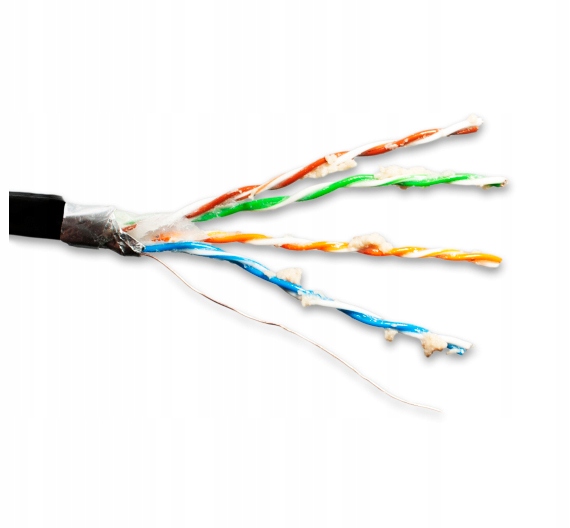 Skrętka teleinformatyczna 8-żyłowa FTP żelowana + UV kategorii 5e przeznaczona do stosowania wewnątrz, zewnątrz lub bezpośrednio w ziemi.