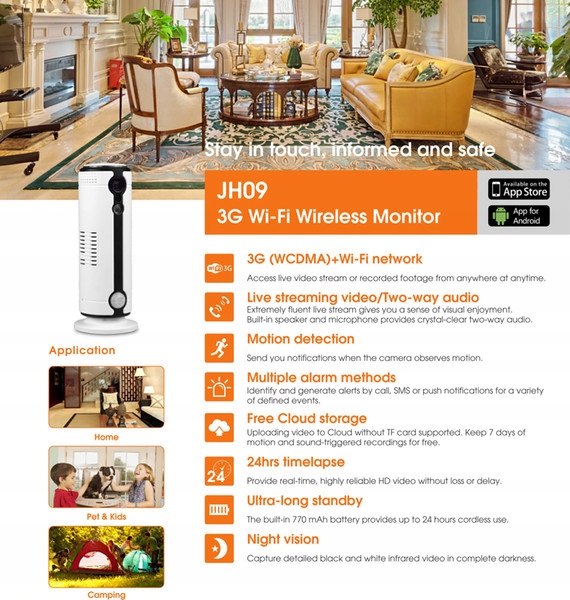 KAMERA IP GSM 3G JH09 wewnętrzna