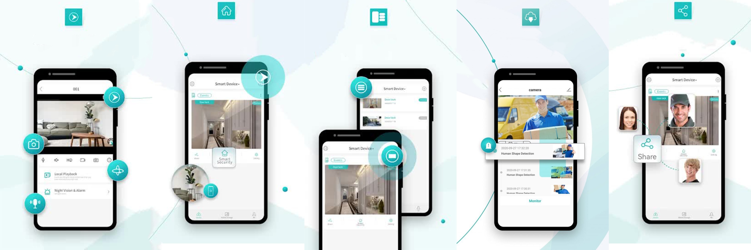 Oprócz standardowych funkcji kamera posiada głośnik i mikrofon, dzięki którym możliwe jest dwukierunkowe przesyłanie dźwięku. Można powiedzieć coś do osoby stojącej w pobliżu kamer i odwrotnie. Za pomocą zdalnej aplikacji można również sterować obrotem kamery za pomocą swojego telefonu (funkcja PTZ). Dodatkowo urządzenie można skonfigurować tak, aby przy wykryciu ruchu wysyłało wiadomość alarmową PUSH na dany numer telefonu.