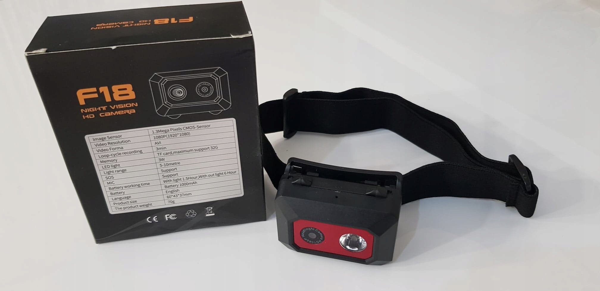 KAMERA SPORTOWA FullHD 2Mpx NA MOTOR ROWER ROLKI +OPASKA na czoło + latarka