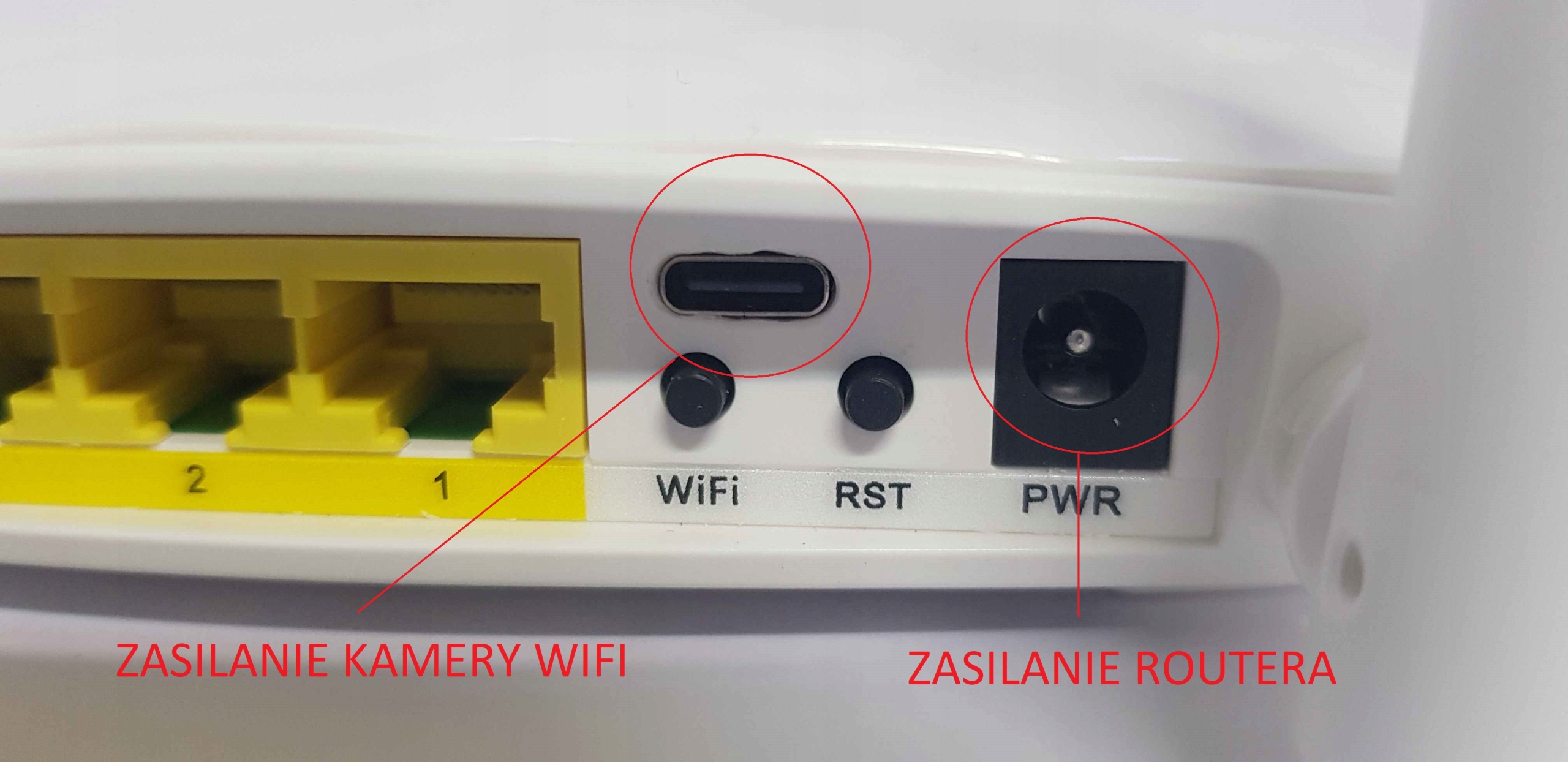 - W tym modelu możesz podłączyć niezależnie samą kamerę WiFi lub sam router WiFi albo korzystać z obu jednoczesnie. Umożliwia to zastosowanie oddzielnych źródeł zasilania, kamera WiFi zasilana jest za pomcoą kabla USB typu C, a router WiFi za pomocą zasilacza