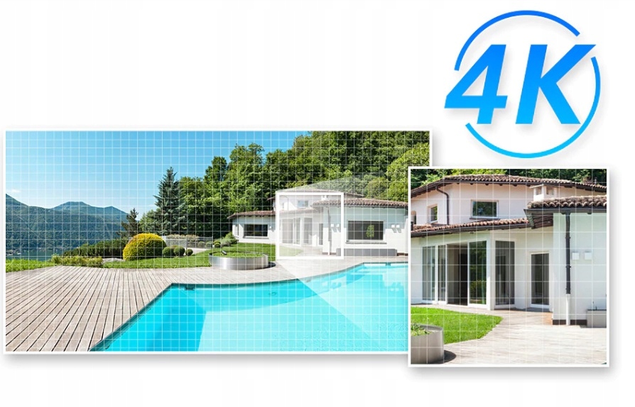 *Oszałamiająca rozdzielczość o bardzo wysokiej jakości 4K (8-megapikselowa/3840×2160), zapewniająca lepszą jakość obrazy przy słabym oświetleniu. Zobacz więcej szczegółów i wyraźniej w 4K,