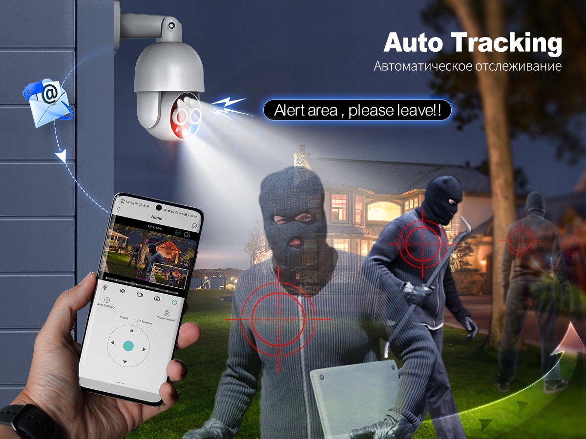 * Automatyczne śledzenie człowieka i ustawienie pozycji , po wykryciu człowieka kamera automatycznie śledzi poruszający się ruch i automatycznie obraca się do ustawionej pozycji