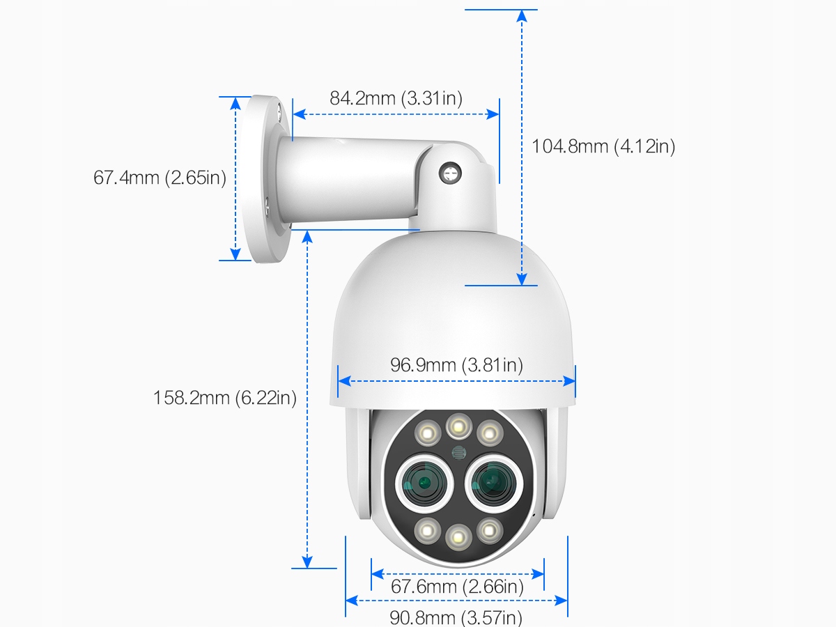 * Inteligentne wykrywanie humanoidów Ai: wyzwalanie alarmów tylko wtedy, gdy wykryto ruch człowieka, a nie gdy zwierzęta, drzewa i pojazdy przejeżdżają obok.
