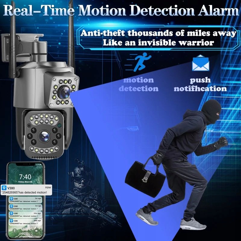 Zewnętrzna Kamera V380 2x 4MPX na 4G GSM LTE SIM PTZ zoom alarmy + 128GB