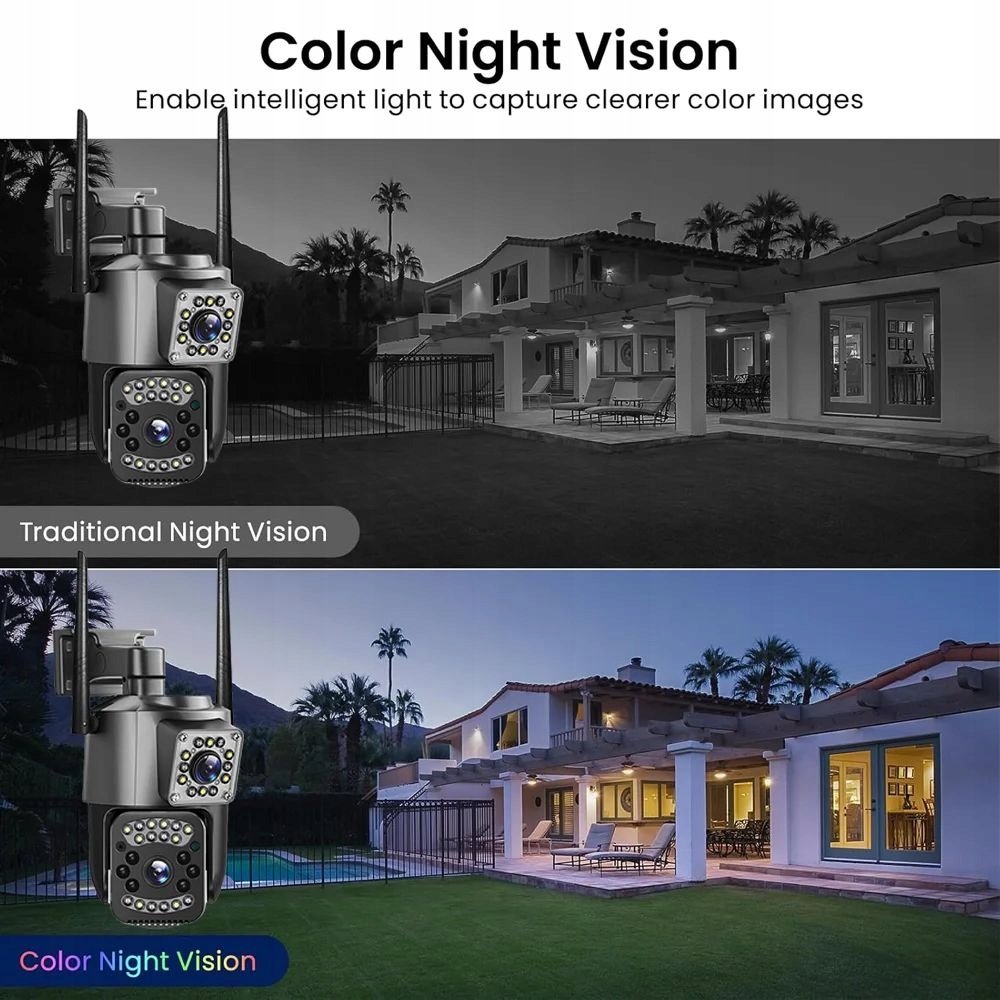 – Podwójny obiektyw, podwójny czujnik, podwójny ekran, szerokokątne oglądanie + oglądanie na duże odległości, aby uzyskać wyraźny monitoring z daleka i blisko;