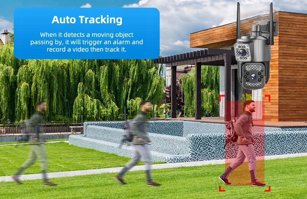 – Automatyczne śledzenie: gdy kamera IP wykryje poruszający się obiekt, automatycznie podąża za obiektem.